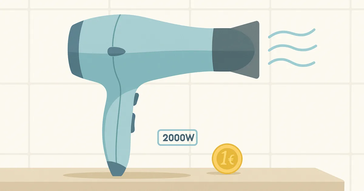 Per un asciugacapelli domestico da 2.000W, prezzo energia 0,18 €/kWh: